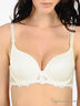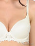 Бюстгальтер на косточках. Формованные бесшовные чашечки. Бретели регулируются по длине, отстегиваются. Застежка на два крючка в 3 ряда. Украшен кружевом и вышивкой.