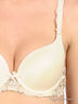 Бюстгальтер на косточках. Бесшовные формованные чашечки. Бретели регулируются по длине, отстегиваются. Застежка на два крючка в 3 ряда. Украшен кружевом и вышивкой.