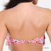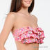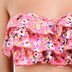 Бюстгальтер - купальник выполнен из эластичного трикотажа, формованная чашка гладкая с завязкой между чашками, без бретелей, оригинальная расцветка, декорирован рюшами.