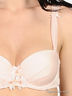 Формованные гладкие чашечки у бюста. Легкий эффект push-up благодаря поролоновому уплотнителю. Бретельки из тонкой сеточки декорированы бантиками, регулируются по длине. Бретельки отстегиваются. Бюст застегивается на спине на 2 крючка в 3 ряда.