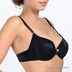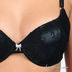 Бюстгальтер push-up со съёмными вкладышами. Выполнен из атласа с узором и кружевом. Украшен декоративной брошью. Регулируемые бретели.