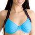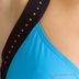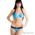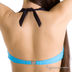 Оригинальный бирюзовый бюстгалер на кости со стильной завязкой за шею в виде черной ленты со стразами.