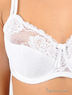 Оригинальный бюстгальтер классической формы на косточках. Чашки выполнены из кружева с хлопковой подкладкой, спинка из тонкой эластичной ткани. Нижняя часть чашек на поролоне. Несъемные эластичные бретели регулируются по длине. Застегивается на два крючка в три позиции.