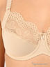 Комфортный бюстгальтер классической формы на косточках. Выполнен из тонкой эластичной ткани. Несъемные эластичные бретели регулируются по длине. Застегивается на два крючка в три позиции. Чашки декорированы эластичными кружевными вставками.
