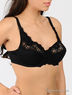 Оригинальный бюстгальтер классической формы на косточках. Выполнен из тонкой эластичной ткани. Несъемные эластичные бретели регулируются по длине. Застегивается на два крючка в три позиции. Декорирован кружевными вставками.