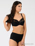 Оригинальный бюстгальтер классической формы на косточках. Чашки выполнены из кружева с хлопковой подкладкой, спинка из тонкой эластичной ткани. Нижняя часть чашек на поролоне. Несъемные эластичные бретели регулируются по длине. Застегивается на два крючка в три позиции.
