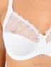 Отличный бюстгальтер классической формы на косточках. Выполнен из тонкой эластичной ткани с жаккардовым плетением. Несъемные эластичные бретели регулируются по длине. Застегивается на два крючка в три позиции. Чашки декорированы кружевными вставками.