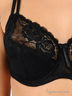 Оригинальный бюстгальтер классической формы на косточках. Чашки выполнены из кружева с хлопковой подкладкой, спинка из тонкой эластичной ткани. Нижняя часть чашек на поролоне. Несъемные эластичные бретели регулируются по длине. Застегивается на два крючка в три позиции.