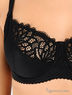 Оригинальный бюстгальтер классической формы на косточках. Выполнен из тонкой эластичной ткани. Несъемные эластичные бретели регулируются по длине. Застегивается на два крючка в три позиции. Декорирован эластичными кружевными вставками на чашках.