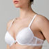 Романтичный бюстгальтер с отстегивающимися бретелями белого цвета из ажурной ткани. Декорирован стильной подвеской между чашечками push-up.