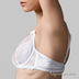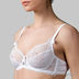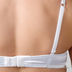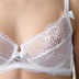 Ажурный бюстгальтер белого цвета с мягкими чашками, между которыми деоративная подвеска.