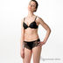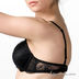 Романтичный бюстгальтер с отстегивающимися бретелями черного цвета из ажурной ткани. Декорирован стильной подвеской между чашечками push-up.