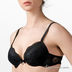 Романтичный бюстгальтер с отстегивающимися бретелями черного цвета из ажурной ткани. Декорирован стильной подвеской между чашечками push-up.