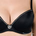 Элегантный бюстгальтер на косточках с гелевым Push-up. Соединение формованных чашечек декорировано сердцем из страз. Верхний обрез чашечек также украшен стразами. Бретели из атласной резинки регулируются по длине. Застежка на два крючка. Петли расположены в три ряда.