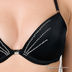 Элегантный бюстгальтер на косточках с эффектом Push-up. Чашечки и задняя бретель декорированы стразами. Особенность этой модели — магнитная застежка спереди и оригинальный дизайн, который позволит Вам носить вещи с открытой спиной. Спинка выполнена из тонкой сеточки. Передние бретели регулируются по длине.