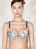 Оригинальный бюстгальтер классической формы с поролоновыми чашками на косточках. Выполнен из тонкой эластичной ткани. Несъемные эластичные бретели регулируются по длине. Декорирован оригинальным принтом.