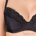 Бюстгальтер-балконет с эффектом Push-up. Формованные чашечки на косточках оснащены съемными поролоновыми вкладышами. Хлопковая подкладка. Бретели регулируются по длине. Дополнительные корректирующие вставки по бокам. Декор: кружево и серебристые нити. Застежка на 2 крючка. Петли расположены в три ряда.
