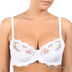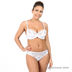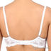 Бюстгальтер на косточках, низ чашки дополнен поролоновым уплотнителем. На чашечка вертикальный шов. Несъемные эластичные бретели регулируются по длине. Застежка на два крючка. Выполнен из рельефного кружева.