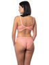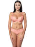 Бюстгальтер формованный, на стане, на каркасах, с боковыми упругими пластинами. Чашки декорированы вышивкой на сетке в стиле «ришелье», переходящей в бретель. Стан из кружевного полотна, центральная и боковые детали усилены монокапроном . Бретели «anti slip». Декор бантик и подвеска со стразом.