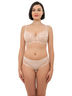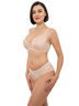 Бюстгальтер с полудублированными чашками на стане, на каркасах. Нижние детали чашек на дубляже. Внутренняя деталь чашки в области проймы, центральная и боковые детали стана усилены монокапроном. В боковых швах упругие пластины. Регулируемые бретели «anti-slip». В центре бюстгальтера и на бретелях – атласные бантики.
