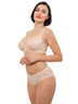 Кружевной бюстгальтер с с полудублированными чашками на стане, на каркасах. Чашка внутри с фигурной поддерживающей деталью из дубляжа. Верхний край чашки усилен тонкой эластичной тесьмой. Передняя и боковые детали стана усилены монокапроном. В боковых швах упругие пластины. Регулируемые бретели «anti-slip». В центре бюстгальтера и на бретелях – атласные бантики.