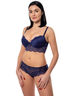 Кружевной бюстгальтер с формованными чашками из тонкого поролона на стане, на каркасах. Передняя деталь стана усилена монокапроном. Боковые детали стана из кружева на подкладке из тонкой микрофибры. Бретели «anti-slip». Украшение – бантик.