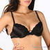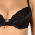 Бюстгальтер на косточках с небольшим эффектом push-up с поролоновым уплотнителем.Чашечки с диагональным швом. Съемные бретельки регулируются по длине. Застежка на один крючок. Выполнен из шелковистого, эластичного материала с благородным лоском. Украшен кружевом.