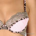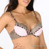Бюстгальтер на косточках с небольшим эффектом push-up с поролоновым уплотнителем.Чашечки с диагональным швом. Съемные бретельки регулируются по длине. Застежка на один крючок. Выполнен из кружева и сетчатого материала. Сьорки на чашечках. Декорирован полосками с леопардовым принтом.
