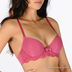 Бюстгальтер на косточках с небольшим эффектом push-up с поролоновым уплотнителем. Бесшовные чашечки. Съемные бретельки регулируются по длине. Застежка на один крючок. Выполнен из фактурного, эластичного материала. Украшен кружевными вставками.