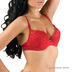 Бюстгальтер "push-up" на каркасах, с объемными вкладышами. Выполнен из эластичного кружева и эластичного полотна. Внутренняя сторона чашки дублирована хлопком. Декор: бантик со стразами.