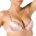 Элегантный бюстгальтер с гелевым Push-up нежных тонов декорирован бантиком с розоцкой спереди. Бретели регулируемые с возможностью отстегивания. Верхняя часть чашечек и передняя часть бретель с вышивкой. В комплект входят однотонные бретели розового цвета.