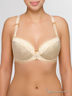 Нарядный классический бюстгальтер push-up из набивной ткани с цветочным орнаментом имеет съемные поролоновые вкладыши. Верх отделан кружевом бежевого цвета. Бока и спинка из кружева, бока усилены косточками. Бретели съемные узкие регулируются, сверху декорированы атласной тесьмой и бантиком. Застежка: 2 крючка на 3 позиции.