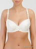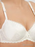 Бюстгальтер так называемый круглый push-up. Спереди один вертикальный шов. За счет этого грудь в этом изделии выглядит естественно. Чашки выполнены из шелкового сатина, бока и спинка из гипюра. Внутри исполнение как у обычного push-up, поролоновые вставки убираются. Бретели широкие, регулируемые, не убираются. Спереди имеют оригинальное исполнение и декор.