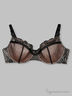 Бюстгальтер из сатина черно-телесного цвета с чашечкой пуш ап, украшен нежной сеточкой и гипюром. Изделие выполнено из качественного материала. Позволит создать невероятно сексуальный неповторимый образ.