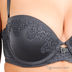 Вызывающе сексуальный, соблазнительный бюстгальтер на косточках с плотными чашечками, дополненными съемными вкладышами на поролоне. Эластичные съемные бретели регулируются по длине. Застежка на один крючок на три позиции. Декорирован кружевом.