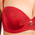 Вызывающе сексуальный, соблазнительный бюстгальтер на косточках с плотными чашечками, дополненными съемными вкладышами на поролоне. Эластичные съемные бретели регулируются по длине. Застежка на один крючок на три позиции. Декорирован кружевом.