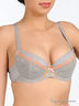 Бюстгальтер Push up на косточках с поролоновыми чашками. Выполнен из эластичного шелковистого материала, чашки внутри с хлопковой подкладкой, дополнены съемным уплотнителем. Съемные эластичные бретели регулируются по длине. Застегивается на два крючка в две позиции. Декорирован оригинальным принтом и кружевом.