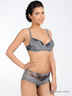 Бюстгальтер Push up на косточках с поролоновыми чашками. Выполнен из тонкого двухслойного сетчатого материала, чашки внутри с хлопковой подкладкой, дополнены съемным уплотнителем. Съемные эластичные бретели регулируются по длине. Застегивается на два крючка в две позиции. Декорирован оригинальным принтом и кружевными вставками.