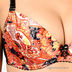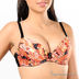 Оригинальный бюстгальтер Push up на косточках с поролоновыми чашками. Выполнен из тонкой атласной ткани, внутренняя часть чашек выполнена из мягкого хлопкового материала. Съемные эластичные бретели регулируются по длине. Нижняя часть чашек дополнена съемным уплотнителем. Застегивается на два крючка в три позиции. Декорирован оригинальным принтом.