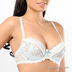 Оригинальный бюстгальтер Push up на косточках с поролоновыми чашками. Выполнен из эластичной кружевной ткани, внутренняя часть чашек выполнена из мягкого хлопкового материала. Съемные эластичные бретели регулируются по длине. Нижняя часть чашек дополнена съемным уплотнителем. Застегивается на два крючка в три позиции. Декорирован оригинальной вышивкой.