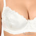 Оригинальный бюстгальтер Push up на косточках с поролоновыми чашками. Выполнен из эластичной сетчатой ткани, внутренняя часть чашек выполнена из мягкого хлопкового материала. Съемные эластичные бретели регулируются по длине. Нижняя часть чашек дополнена съемным уплотнителем. Застегивается на два крючка в три позиции. Декорирован оригинальной вышивкой.