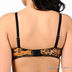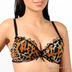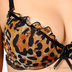 Оригинальный бюстгальтер Push up на косточках с поролоновыми чашками. Выполнен из тонкой эластичной сетчатой ткани, внутренняя часть чашек выполнена из мягкого хлопкового материала. Съемные эластичные бретели регулируются по длине. Нижняя часть чашек дополнена съемным уплотнителем. Застегивается на два крючка в две позиции. Декорирован оригинальным принтом - леопард.