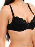 Великолепный бюстгальтер с тонкой поролоновой чашкой на косточках, дополненной съемными вкладками, создающими эффект push-up. Выполнен из тонкой сетчатой ткани с жаккардовым плетением, чашки с хлопковой подкладкой. Съемные бретели регулируются по длине, застежка на два крючка в три позиции. Декорирован кружевными вставками на чашках и бантиком на дорожке.