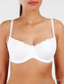 Оригинальный бюстгальтер push-up на косточках с поролоновой чашкой. Выполнен из тонкой эластичной ткани с рисунком "гусиная лапка". Несъемные эластичные бретели регулируются по длине. Застегивается на один крючок в три позиции. Чашки дополнены съемным поролоновым уплотнителем. Декорирован кружевными вставками.