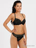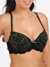 Бюстгальтер push up на косточках с поролоновой чашкой. Выполнен из тонкого кружевного материала, чашки из шелковистой ткани с принтом. Съемные эластичные бретели регулируются по длине. Застегивается на два крючка в три позиции. Чашки дополнены съемным уплотнителем.