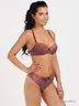 Бюстгальтер push up на косточках с поролоновой чашкой. Выполнен из тонкого эластичного материала. Съемные эластичные бретели регулируются по длине. Застегивается на два крючка в три позиции. Чашки дополнены съемным уплотнителем. Декорирован принтом - клетка и кружевными вставками.