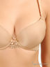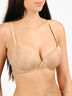 Оригинальный бюстгальтер push-up с поролоновыми чашками на косточках. Регулируемые съемные эластичные бретели-трансформеры, с возможностью застежки вокруг шеи. Застегивается на два крючка в три позиции. Чашки дополнены несъемным гелевым уплотнителем с эффектом push-up. Декорирован кружевными вставками. В комплекте: силиконовые бретели, накладки для спины - эластичная и силиконовая.