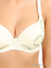 Оригинальный бюстгальтер push-up с поролоновыми чашками на косточках. Регулируемые съемные эластичные бретели-трансформеры, с возможностью застежки вокруг шеи. Застегивается на два крючка в три позиции. Несъемный поролоновый уплотнитель, создающий эффект push-up. Декорирован оригинальными нашивками.