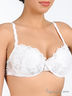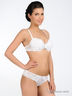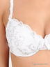 Бюстгальтер Push up на косточках с поролоновыми чашками. Выполнен из тонкого сетчатого материала с кружевными вставками. Чашки внутри с хлопковой подкладкой, дополнены съемным уплотнителем. Съемные эластичные бретели регулируются по длине. Застегивается на два крючка в три позиции.