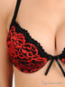 Бюстгальтер Push up на косточках с поролоновыми чашками. Выполнен из кружевного материала, чашки внутри с хлопковой подкладкой, дополнены съемным уплотнителем. Съемные эластичные бретели регулируются по длине. Застегивается на два крючка в три позиции.